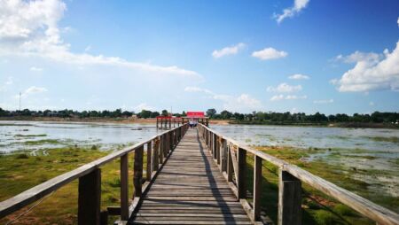 ทีมงานมีทั้งพระโยม เริ่มแรกในการคิด คือ กำนันกระมล สุจริตกับอาตมาเพียง 2 คน ไปปรึกษากับคณะอำเภอ รองเจ้าคณะอำเภอเปิดไฟเขียว เราพร้อมเร่งดำเนินการทันที เพราะช่วงนี้น้ำในบึงน้อย พื้นดินแห้งเหมาะกับการสร้างสะพาน สะพานไม้ยาว 446 เมตร ถือว่างานเสร็จเร็วเกินคาดหวัง เริ่มสร้างวันที่ 28-29 มกราคม 2563 ระยะเวลา 3 เดือน ปูพื้นจากฝั่งบ้านหัวบึงไปถึงบ้านพะไล มาทำกุฎิด้านตะวันตก แรงงานมาช่วยกันตามกำลังศรัทธา มาช่วงเช้า หรือช่วงบ่ายก็แล้วแต่เขา จำนวน 30 40 50 คนบ้าง มาคนมาช่วยงานครัว ผู้เฒ่าผู้แก่ที่ทำงานไม่ได้ ก็มานั่งให้กำลังใจ