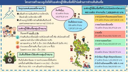 “การคืนดอกเบี้ยให้องค์กรผู้ใช้สินเชื่อในครั้งนี้ เพื่อสร้างแรงจูงใจให้เกิดความมีวินัยด้านการชำระคืนสินเชื่อตามงวดการชำระคืนเป็นปกติ ซึ่งจะเป็นตัวอย่างที่ดีให้แก่องค์กรผู้ใช้สินเชื่อรายอื่นๆ รวมถึงเพื่อเป็นการช่วยลดผลกระทบด้านการบริหารสภาพคล่องทางการเงินให้แก่องค์กรชุมชนที่มีการชำระคืนตามงวดการชำระคืนเป็นปกติ ซึ่งได้รับผลกระทบจากการที่สมาชิกชะลอการชำระคืนสินเชื่อในระหว่างช่วงสถานการณ์การแพร่ระบาดของเชื้อไวรัสโควิด-19 จะได้นำดอกเบี้ยที่ได้รับคืนไปเฉลี่ยคืนให้กับสมาชิกในโครงการเพื่อแบ่งเบาภาระค่าใช้จ่ายในครอบครัว หรือนำดอกเบี้ยที่ได้รับคืนกลับไปพัฒนาความเข้มแข็งขององค์กรในด้านต่างๆ เช่น การพัฒนาคุณภาพชีวิตของสมาชิก การจัดสวัสดิการให้สมาชิก เป็นต้น” นายสมชาติกล่าวในตอนท้าย