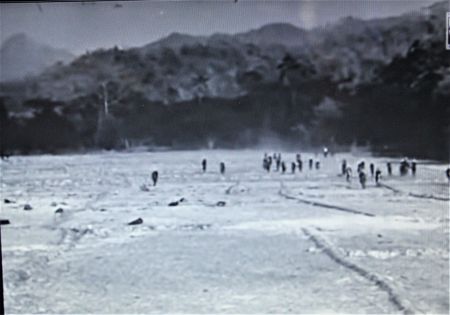 ฉากสงครามในภาพยนตร์เรื่องพระเจ้าช้างเผือก ถ่ายทำที่ตำบลป่าแดง อ.เมือง จ.แพร่ (ภาพจากหอภาพยนตร์ (องค์การมหาชน)