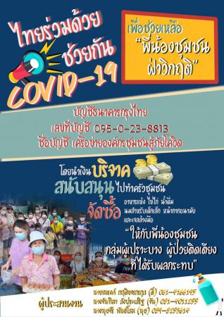 ทั้งนี้ผู้ที่อยากจะสนับสนุนและช่วยเหลือชาวชุมชนที่ได้รับผลกระทบจากการแพร่ระบาดของโควิด-19 ติดต่อได้ตามรายละเอียดด้านล่างนี้