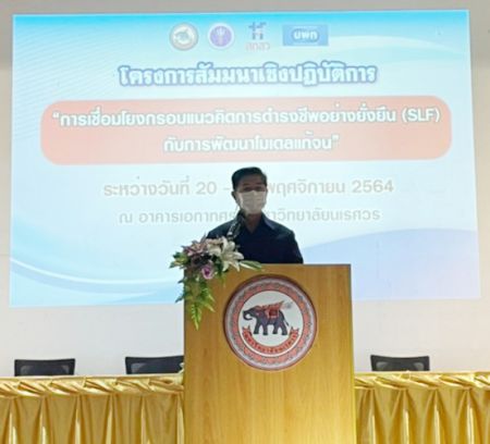 พิษณุโลก : ระหว่างวันที่ 20-21 พฤศจิกายน 2564 บพท. ร่วมกับ มน. จัดสัมมนาเชิงปฏิบัติการการเชื่อมโยงกรอบแนวคิดการดำรงชีพอย่างยั่งยืน (SLF) กับการพัฒนาโมดลแก้จน ณ ห้องประชุม 301 อาคารเอกาทศรถ มหาวิทยาลัยนเรศวร อำเภอเมืองพิษณุโลก จังหวัดพิษณุโลก ซึ่งการสัมมนาครั้งนี้มีวัตถุประสงค์เพื่อเสริสมสร้างความเข้าใจเกี่ยวกับแนวคิดการดำรงชีพอย่างยั่งยืน พัฒนาออกแบบโมเดลแก้จนโดยการเชื่อมโยงกับระบบข้อมูล PPPconnext รวมถึงการพัฒนากรอบการประเมินผลตอบแทนทางสังคมตามแนวทางการดรัพอย่างยั่งยืนโดยการมีส่วนร่วมจากทุกภาคส่วน โดยมีผู้เข้าร่วมจำนวน 70 คน ประกอบด้วย ผู้ทรงคุณวุฒิ ผู้บริหารและเจ้าหน้าที่หน่วย บพท. ผู้แทน พอช. นักวิจัยโครงการส่วนกลาง และทีมวิจัยในระดับพื้นที่เป้าหมาย 4 จังหวัดภาคเหนือ (แม่ฮ่องสอน ลำปาง พิษณุโลก และชัยนาท) ได้รับเกียรติจากนายรณชัย จิตรวิเศษ ผู้ว่าราชการจังหวัดพิษณุโลก ร่วมเป็นประธาน