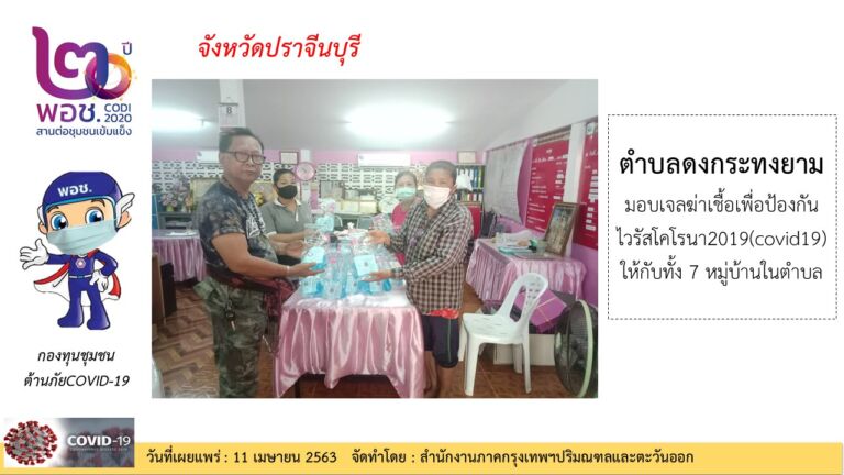 ตำบลดงกระทงยาม จังหวัดปราจีนบุรี มอบเจลฆ่าเชื้อเพื่อป้องกันไวรัสโคโรนา2019(covid19)ให้กับทั้ง 7 หมู่บ้านในตำบล