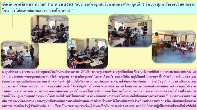 ขบวนองค์กรชุมชนจังหวัดนครศรีธรรมราช จัดประชุมหารือเร่งปรับแผนงานโครงการ ให้สอดคล้องกับสถานการณ์โควิด-19