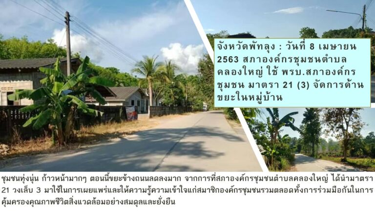 สภาองค์กรชุมชนตำบลคลองใหญ่ ใช้ พรบ.สภาองค์กรชุมชน มาตรา 21 (3) จัดการด้านขยะในหมู่บ้าน