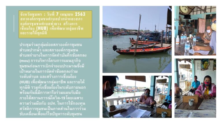 สภาองค์กรชุมชนตำบลปากน้ำและสภาองค์กรชุมชนตำบลท่ายาง สร้างการเชื่อมโยง (HUB) เพื่อพัฒนากลุ่มอาชีพ และรายได้ทุกมิติ
