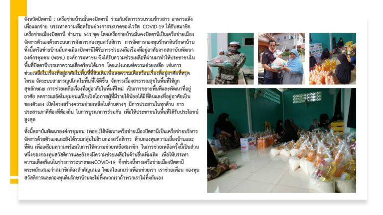 เครือข่ายบ้านมั่นคงปัตตานี รวบรวมข้าวสาร อาหารแห้ง แจกจ่าย บรรเทาความเดือดร้อนช่วงการระบาดของไวรัส COVID-19 ให้กับสมาชิก