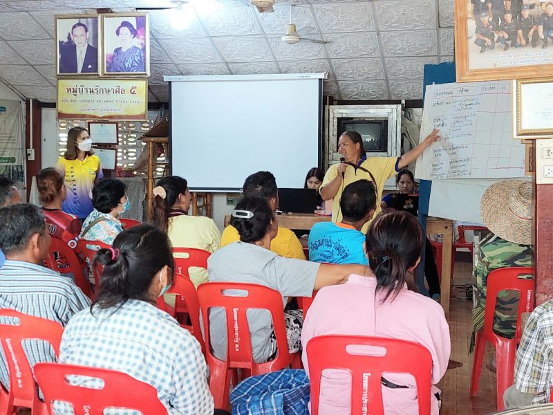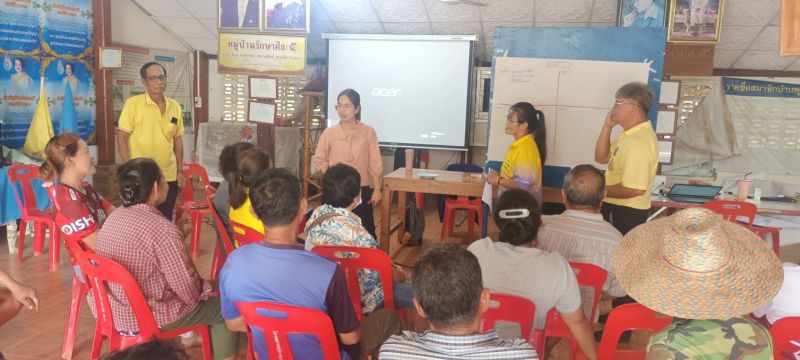 นางสาวพัชร เอี่ยมพ่วง หัวหน้างานปฏิบัติการชุมชน พอช. นำเสนอความสำคัญในการยกระดับครัวเรือนเปราะบางให้มีคุณภาพชีวิตความเป็นอยู่ที่ดีขึ้น รวมถึงจัดกระบวนการตรวจสอบและทบทวนรายชื่อครัวเรือนเปราะบางที่อยู่ในฐานระบบของส่วนราชการ จำนวน 63 คน ร่วมกับผู้นำชุมชนในพื้นที่ให้มีความถูกต้องแม่นยำ กระบวนการดังกล่าว มีการวิเคราะห์ข้อมูลรายครัวเรือน เพื่อรับทราบสภาพปัญหา อาชีพและรายได้ การจัดประเภทสมาชิกในครัวเรือน และการประเมินสภาพความเป็นอยู่ในเบื้องต้น ซึ่งพบว่า เป็นครัวเรือนที่ไม่ตกมิติด้านรายได้ จำนวน 5 ครัวเรือน เป็นครัวเรือนที่ไม่ตกมิติด้านรายได้แต่มีบุคคลในภาวะพึ่งพิง (ลำดับ 0) จำนวน 46 ครัวเรือน เป็นครัวเรือนที่มีรายได้น้อยและมีปัญหาที่อยู่อาศัย (ลำดับ 1) จำนวน 6 ครัวเรือน เป็นครัวเรือนที่มีรายได้น้อยและมีบุคคลที่อยู่ในภาวะพึ่งพิงมากกว่า 2 คน (ลำดับ 3) จำนวน 1 ครัวเรือน และเป็นครัวเรือนที่มีรายชื่อซ้ำ จำนวน 5 ครัวเรือน